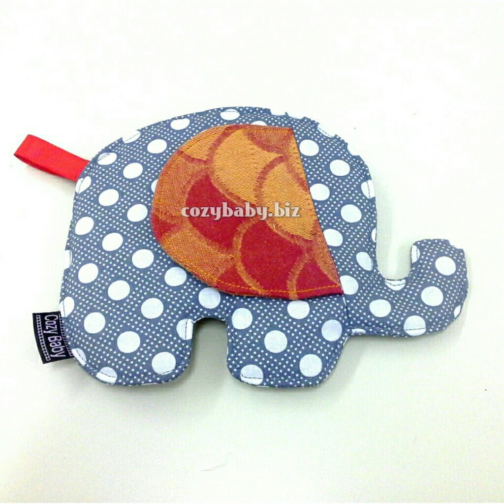 This elephant has Kokadi Scale wrap scrap ears with loud crinkle material inside (sandwiched between 2 layers of cotton).Pattern placement will vary